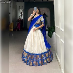 Kalyani Cotton Lehenga Choli with Zari Weaving & Georgette Dupatta – Blue