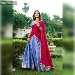 Kanchipuram Zari Weaving Lehenga with Vichitra Silk Dupatta – Blue