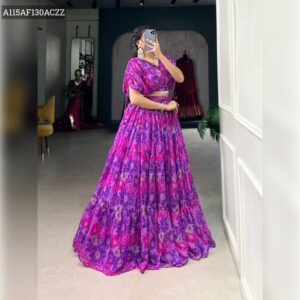 Floral Chiffon Co-ord Set with Pearl Touch Stitched Lehenga & Blouse – Floral Purple