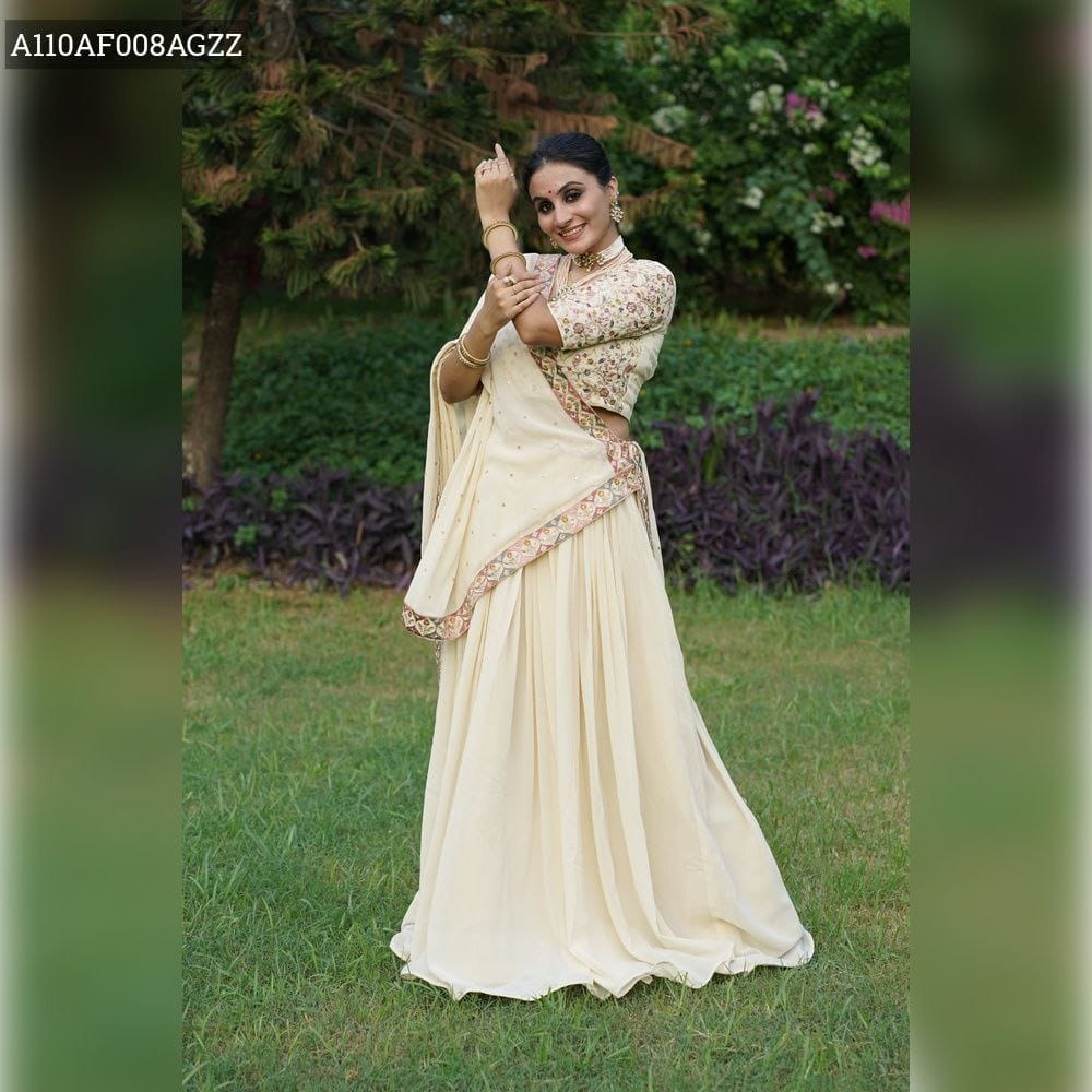 Embroidered Off-White Lehenga Choli with Shimmering Sequins
