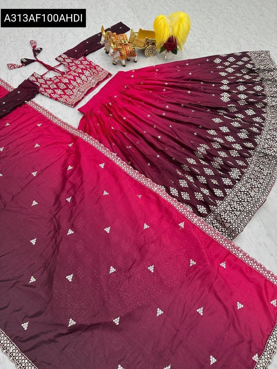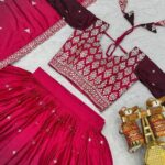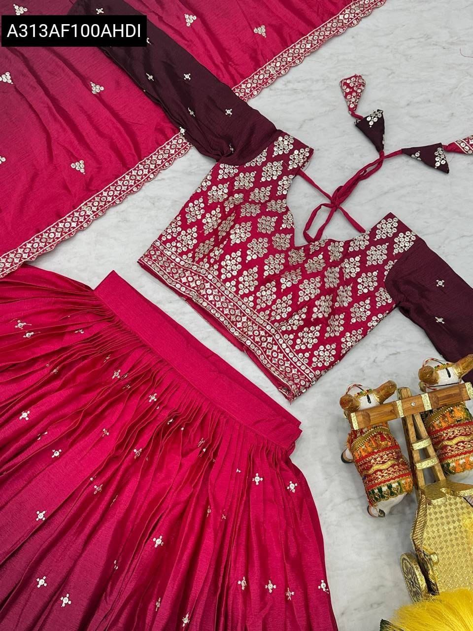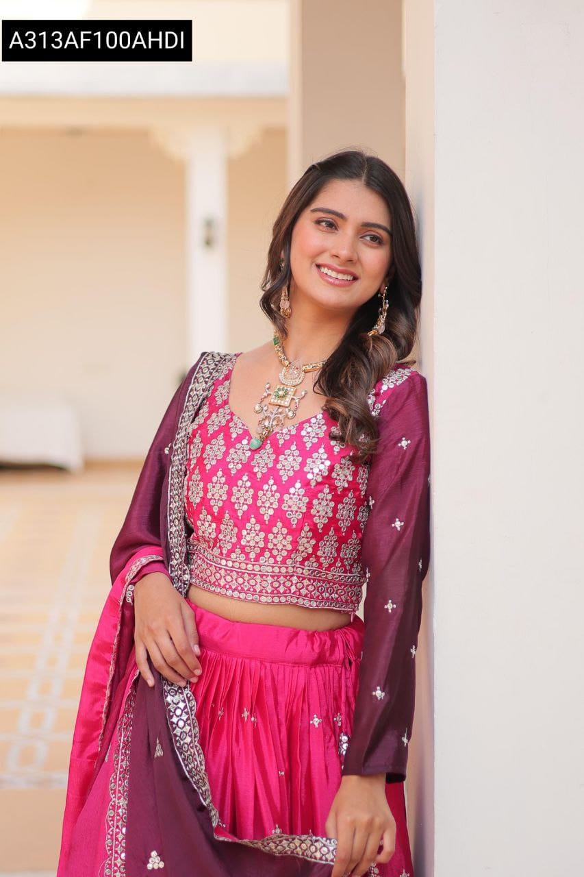 Embroidered Pure Chinon Lehenga Choli with Dupatta – Pink
