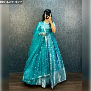 Elegant Erode Silk Gown with Butterfly Net Dupatta Dress – Sky Blue