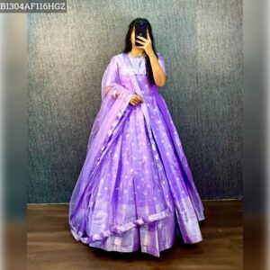 Elegant Erode Silk Gown with Butterfly Net Dupatta Dress – Lavender