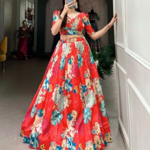 Elegant Tussar Silk Floral Co-Ord Lehenga Set – Red