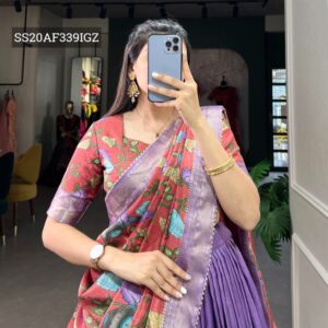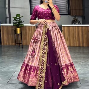 Elegant Tussar Silk Floral Co-Ord Lehenga Set – Blue & Light Purple