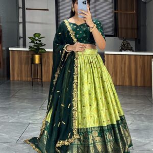 Elegant Tussar Silk Floral Co-Ord Lehenga Set – Green
