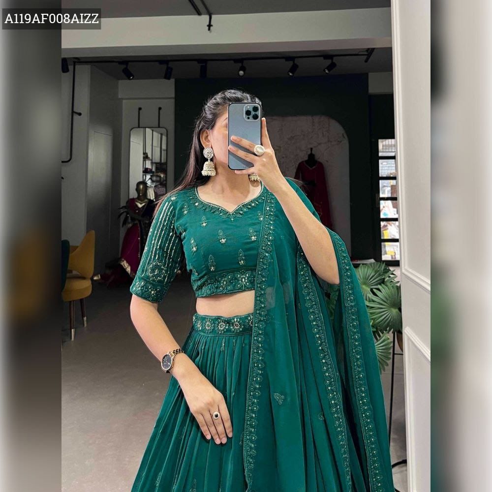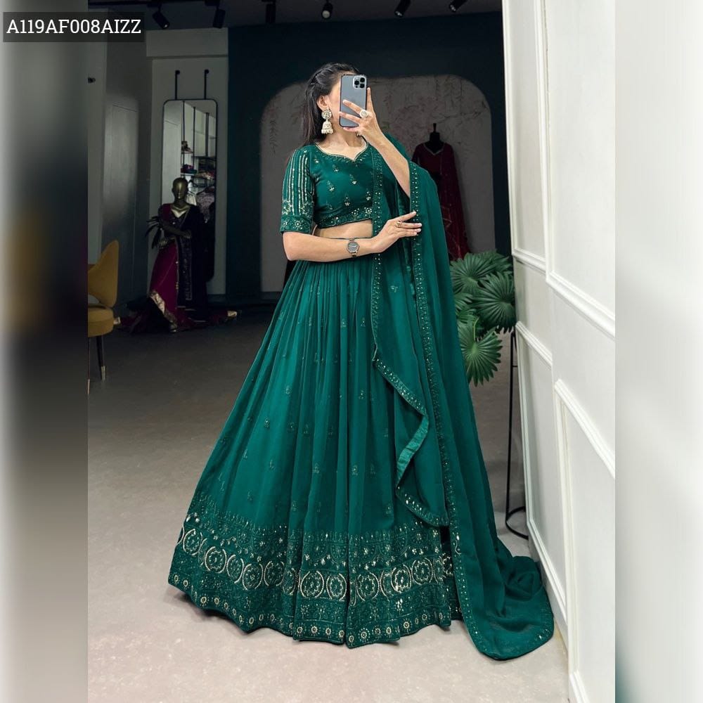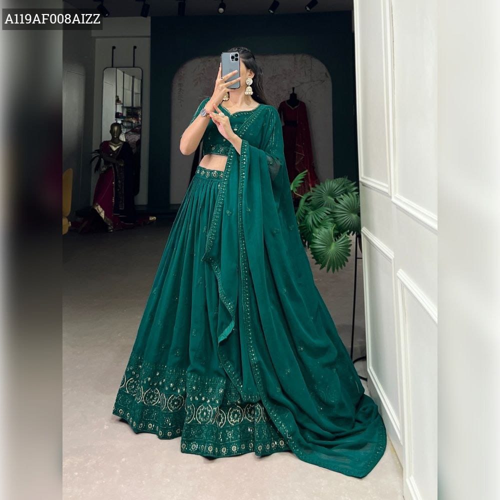 Georgette Wedding Lehenga with Sequins & Thread Embroidery – Emerald Teal