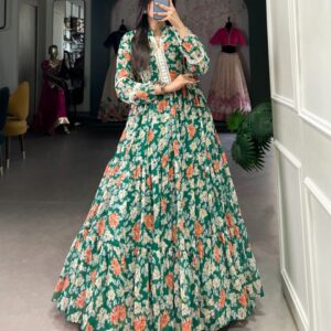 Elegant Erode Silk Gown with Butterfly Net Dupatta Dress – Peach