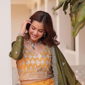 Embroidered Pure Chinon Lehenga Choli with Dupatta – Yellow