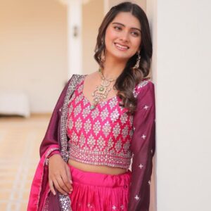 Embroidered Pure Chinon Lehenga Choli with Dupatta – Pink