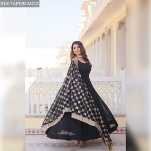Stunning Faux Blooming Gown with Embroidered Sequins Dupatta – Black