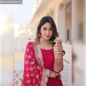 Stunning Faux Blooming Gown with Embroidered Sequins Dupatta – Pink