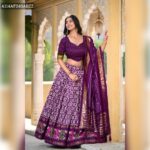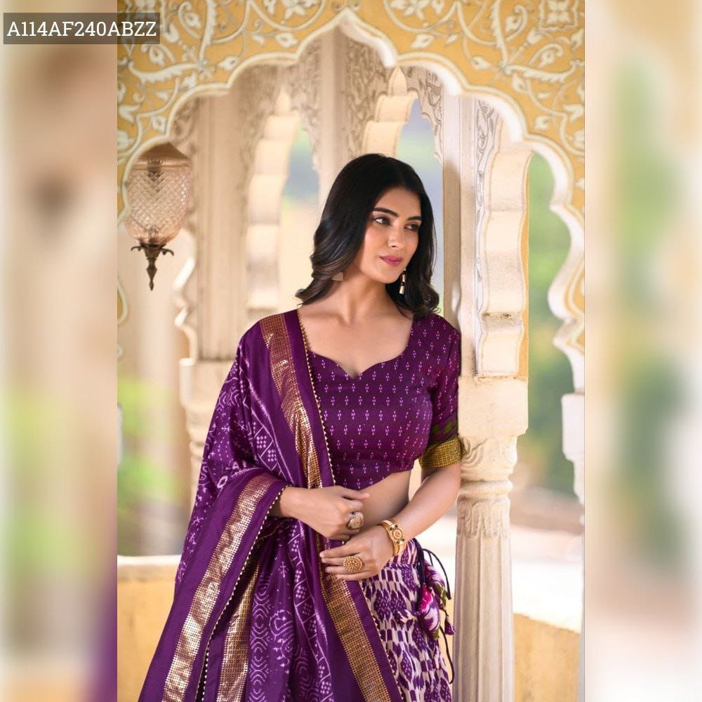 Opulent Tussar Silk Lehenga Choli with Ikkat Print & Foil Work – Royal Purple