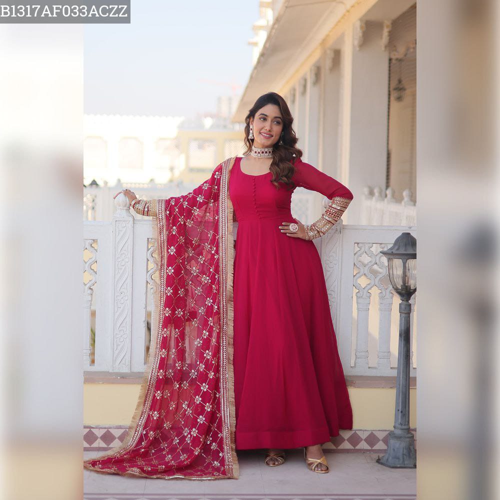 💃🏼 Faux Blooming Gown with Dupatta With Attractive Embroidered Sequins work with Lace Border. 👗