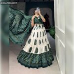 Elegant Tussar Silk Floral Co-Ord Lehenga Set – Green