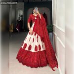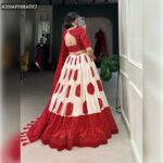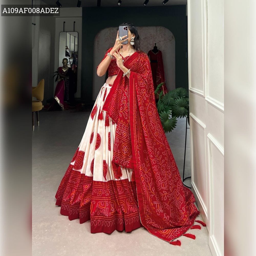 Tussar Red and White Lehenga Choli with Bandhej Print